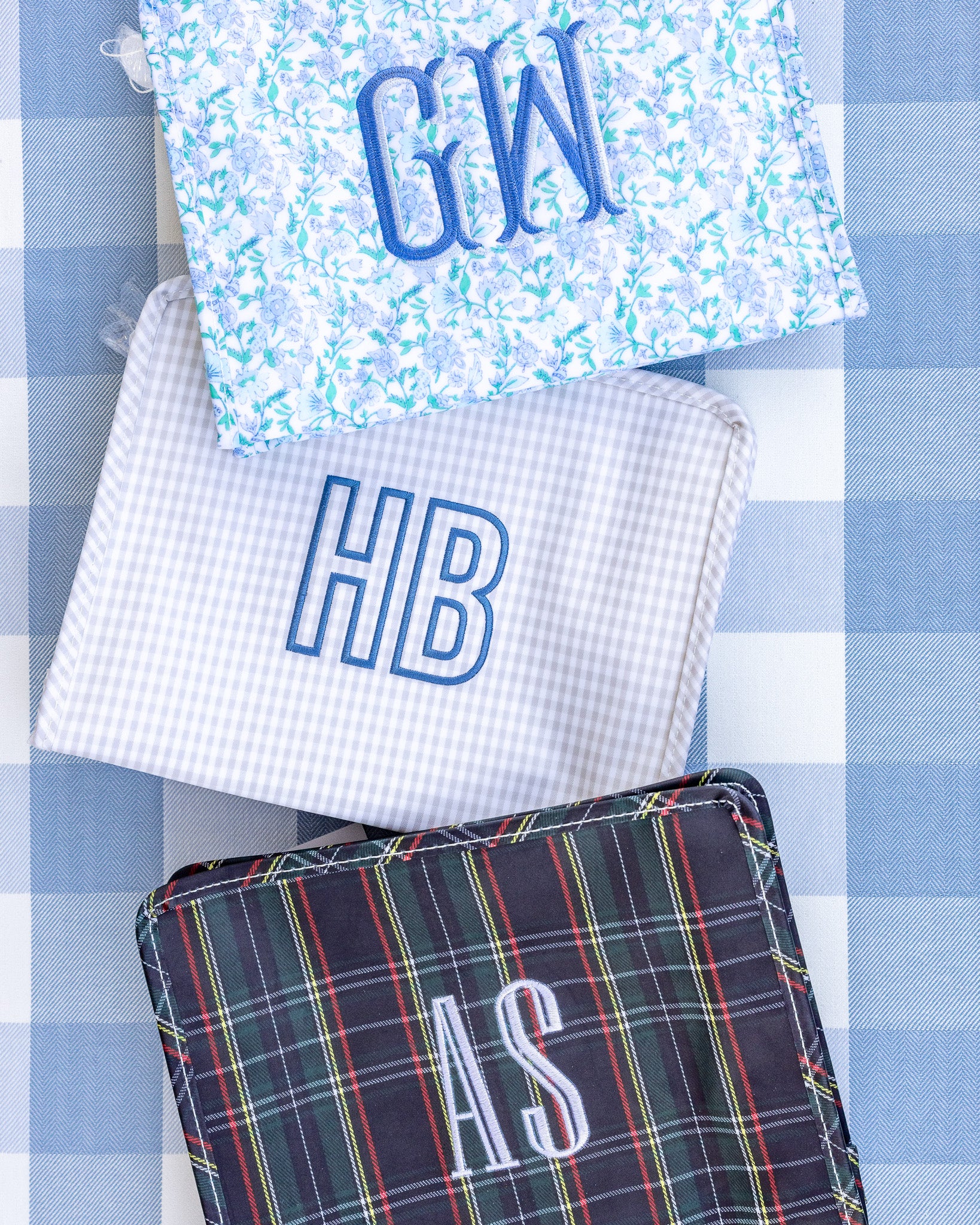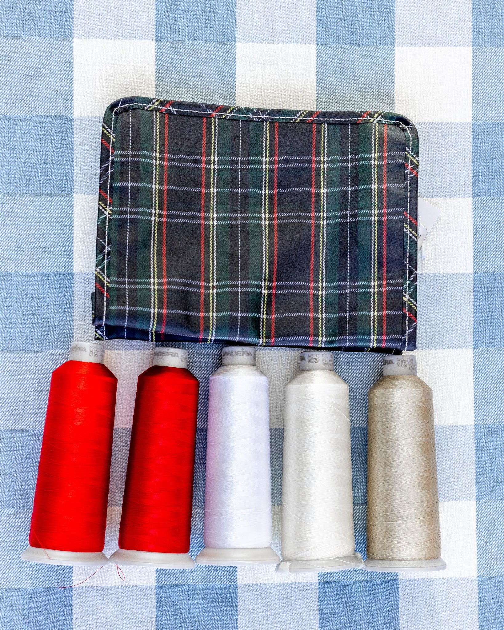 Pimlico Plaid Blue TRVL Medium Roadie Pouch Bag