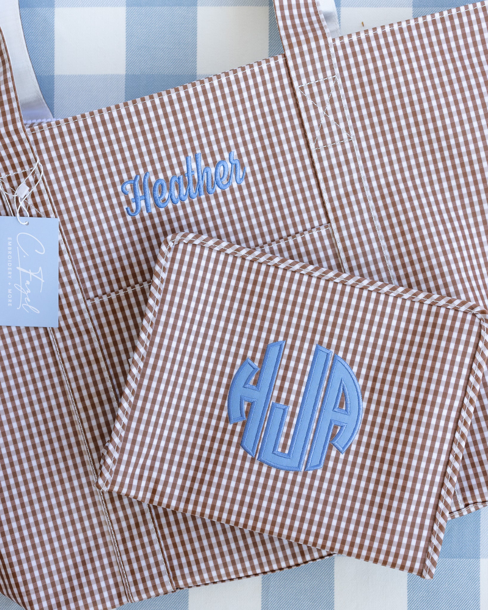 Gingham Sky Medium Roadie Pouch